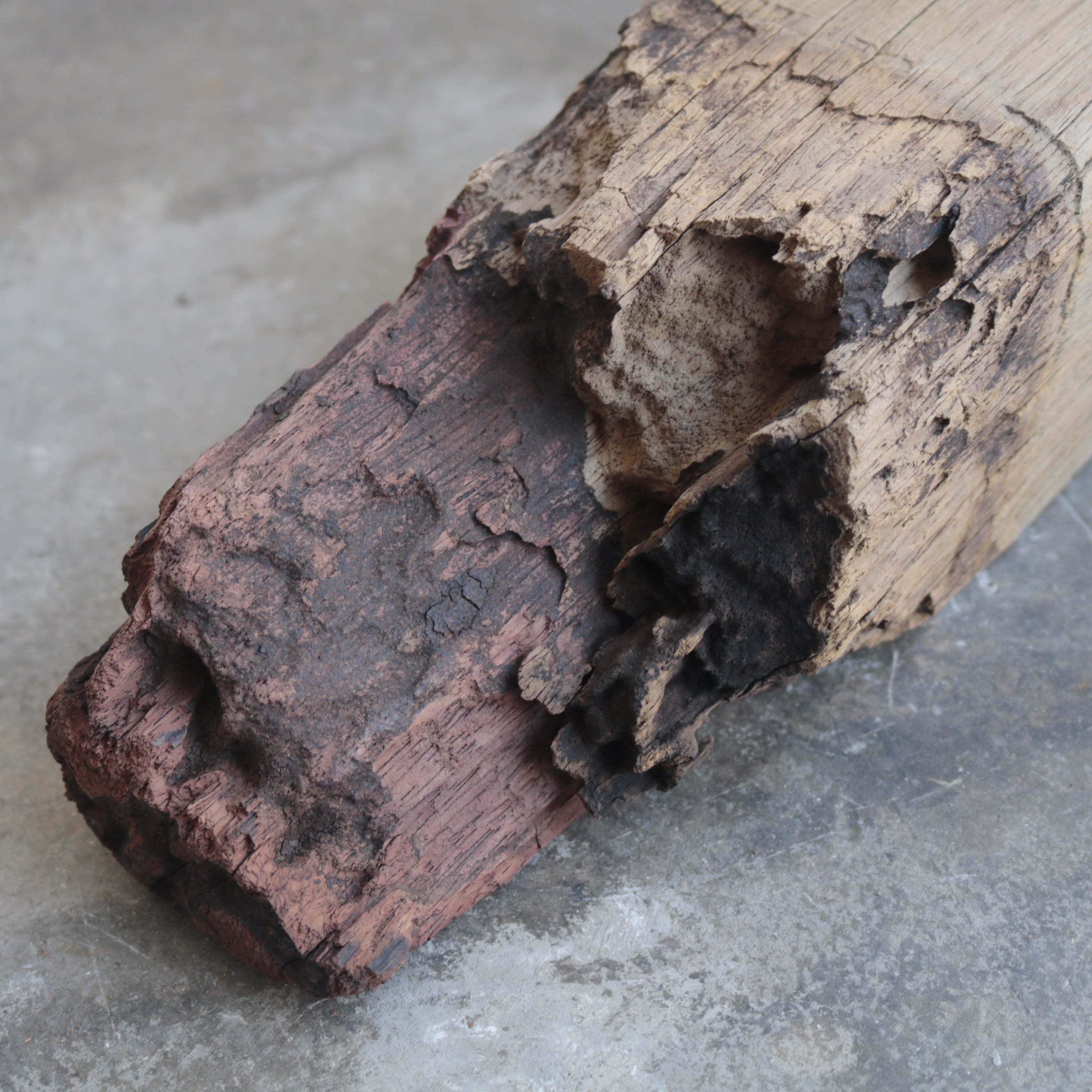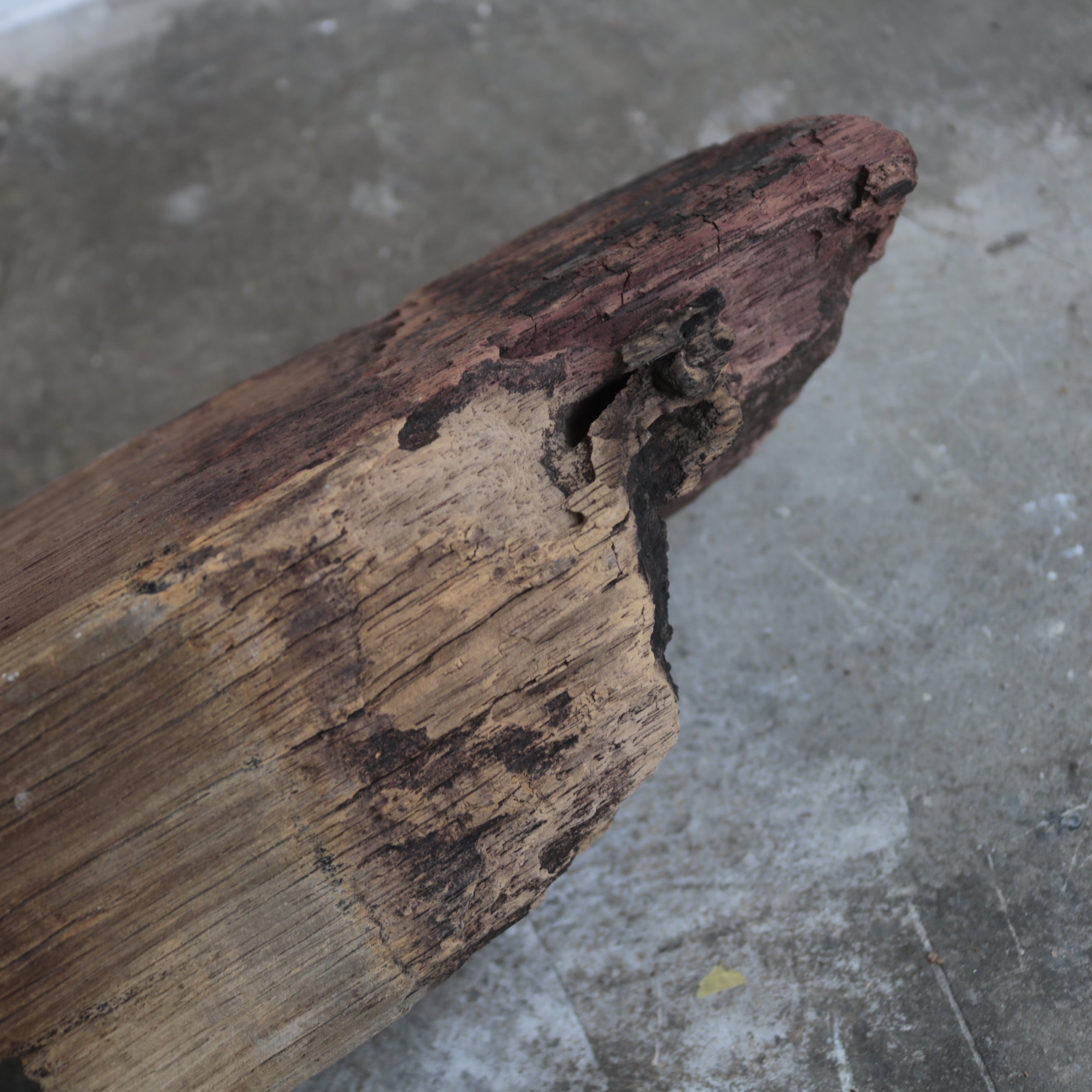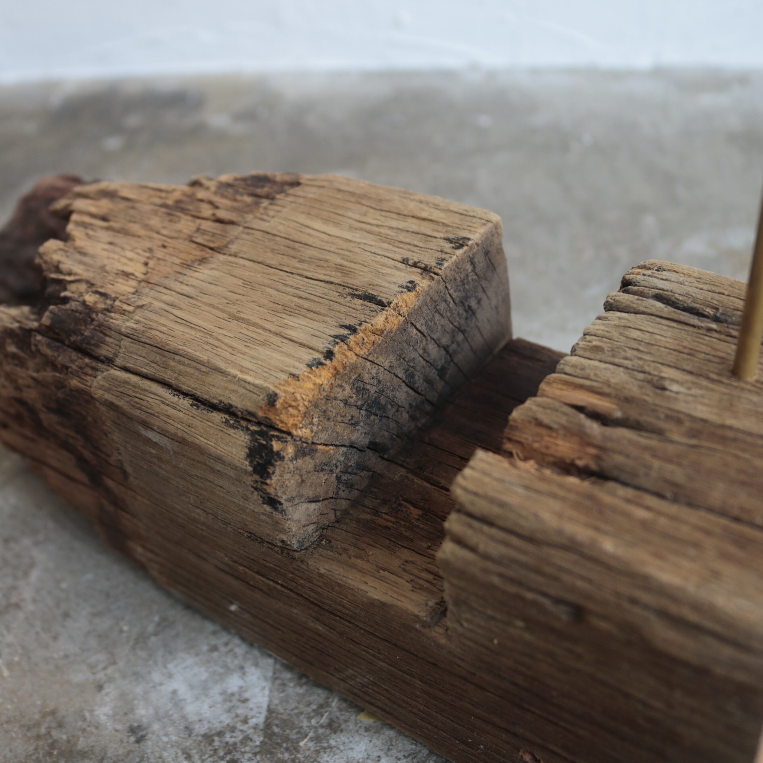 経年変化による傷や割れが歴史を感じさせる古材に、