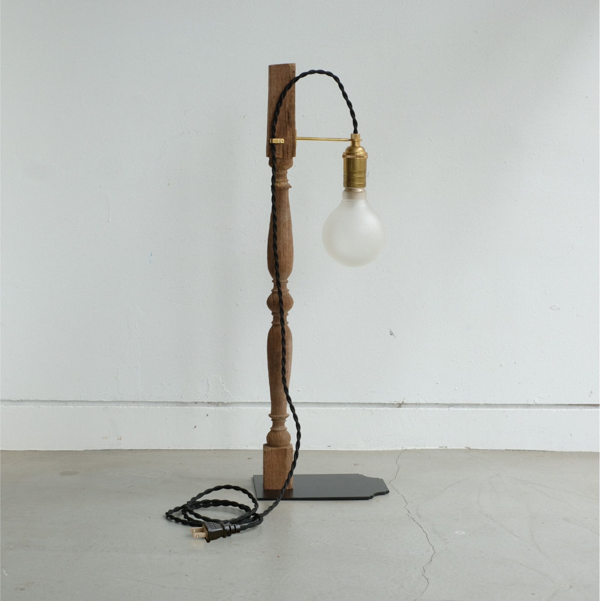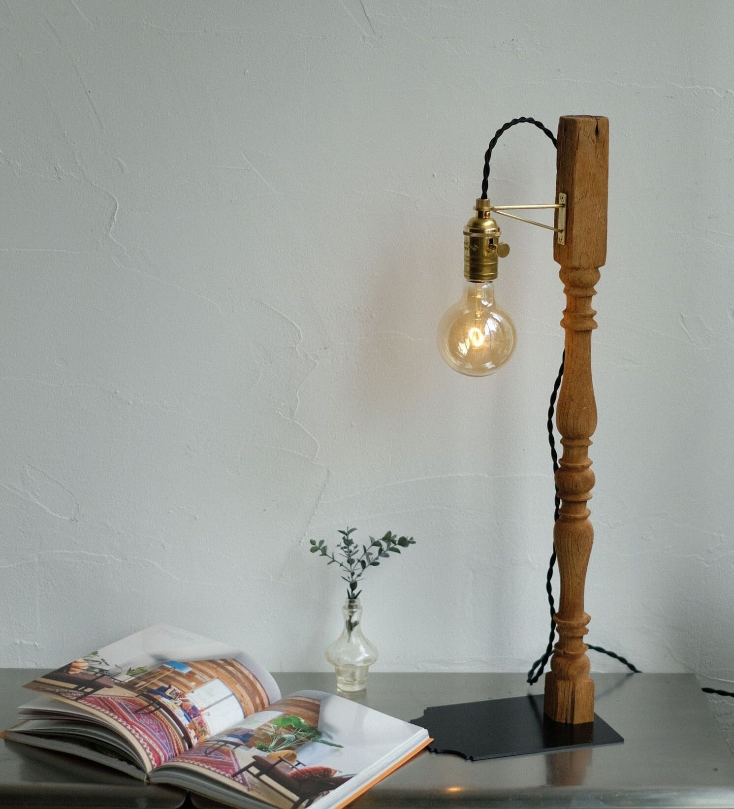 カチカチっとまわしてON/OFFの切り替えが出来るロータリースイッチのついたソケットを採用。クラシックなデザインと真鍮の質感が古材との相性もよく仕上がりました。