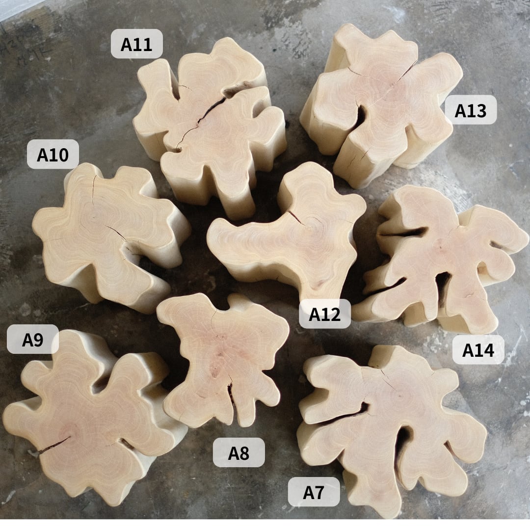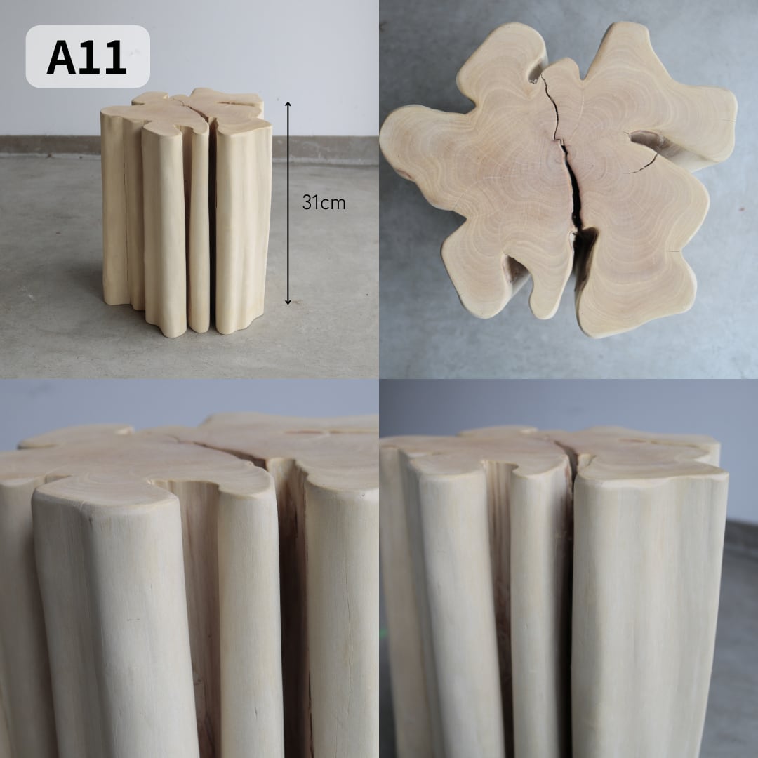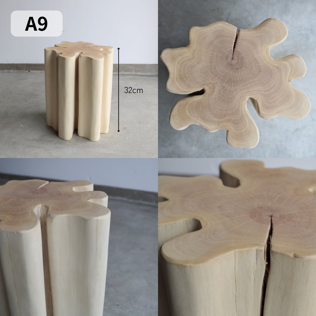 天面には年輪が重なり合う穏やかな模様が広がり、時を重ねてきた木ならではの表情が、世界にひとつだけの個性として息づいています。