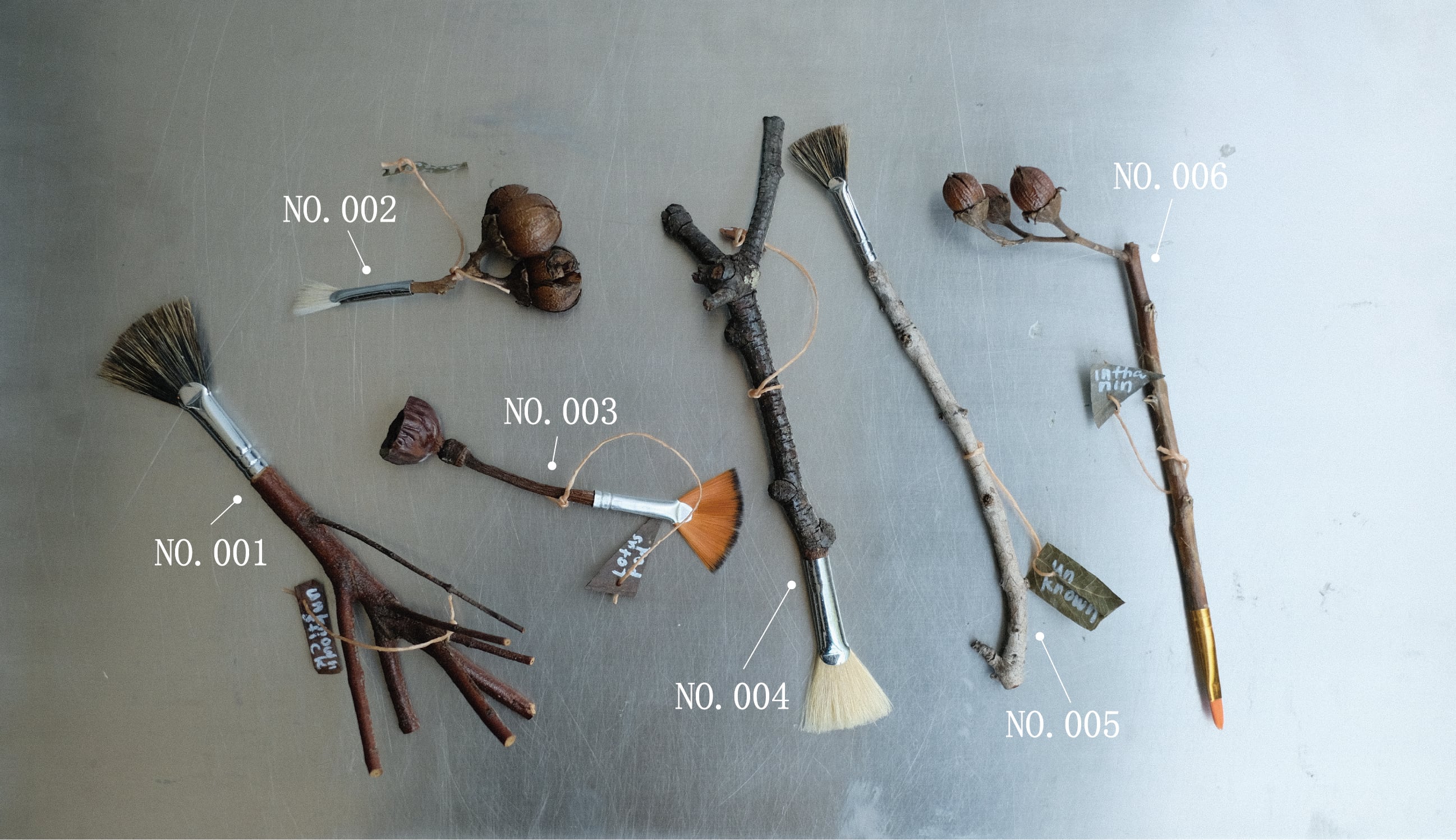 Handcrafted brushes made from fallen branches, each one unique in shape and form.