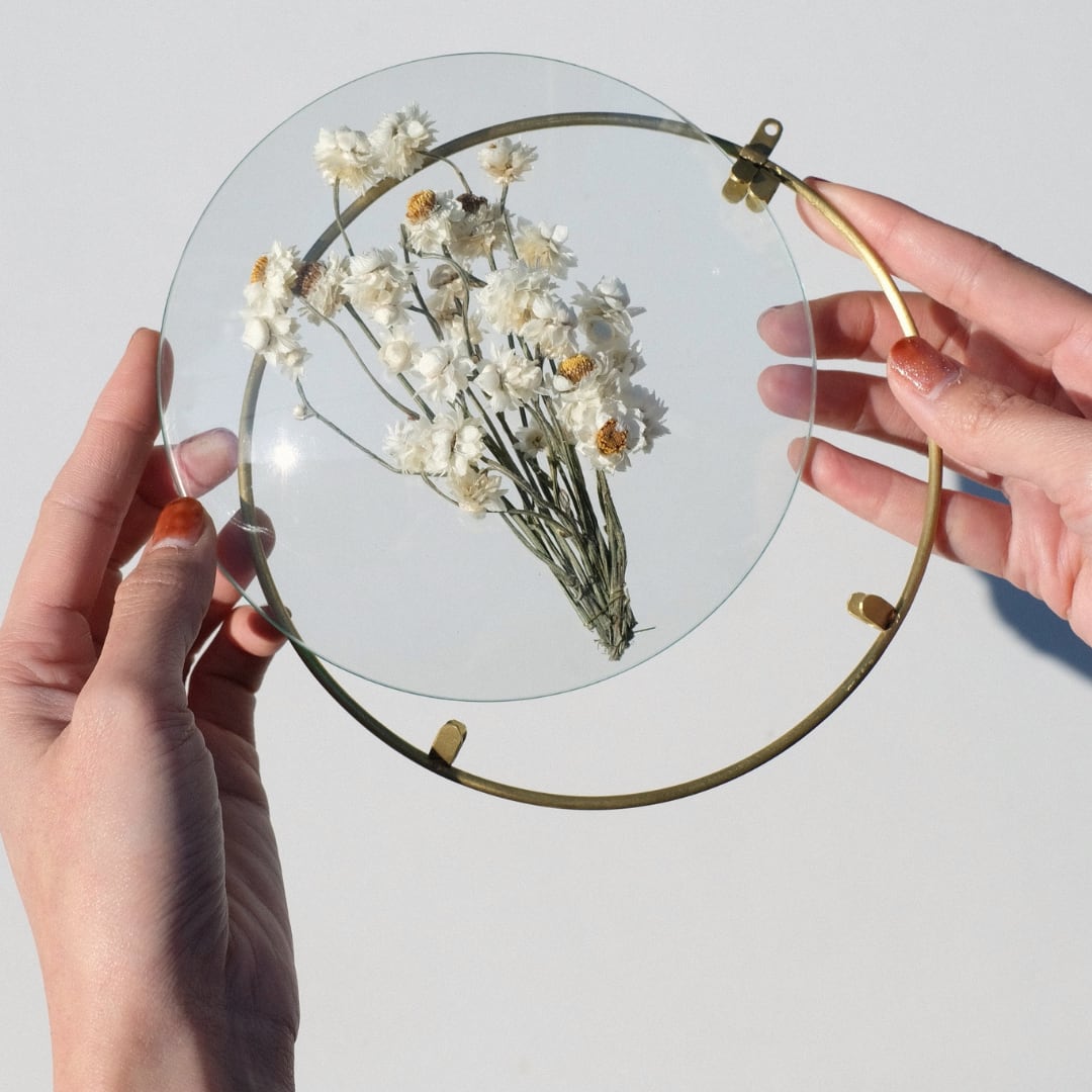 真鍮のフレームにドーム型のガラスを組み合わせたディスプレイフレーム。
