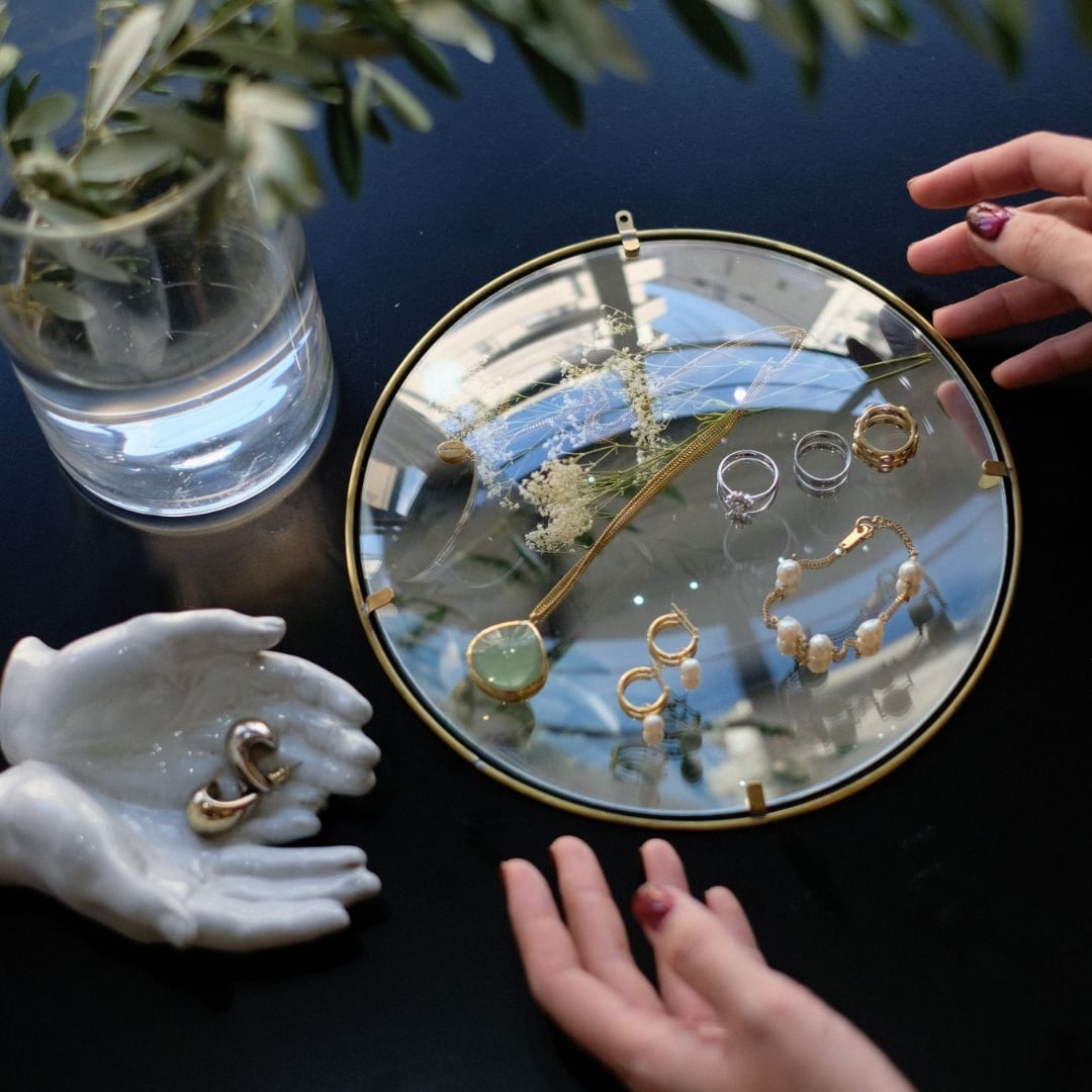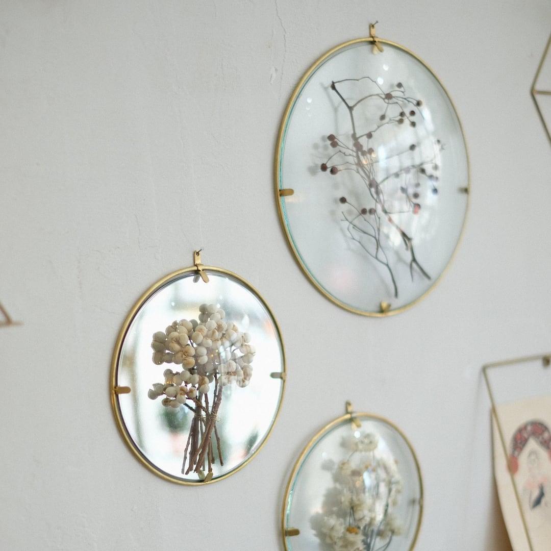真鍮のフレームにドーム型のガラスを組み合わせたディスプレイフレーム。