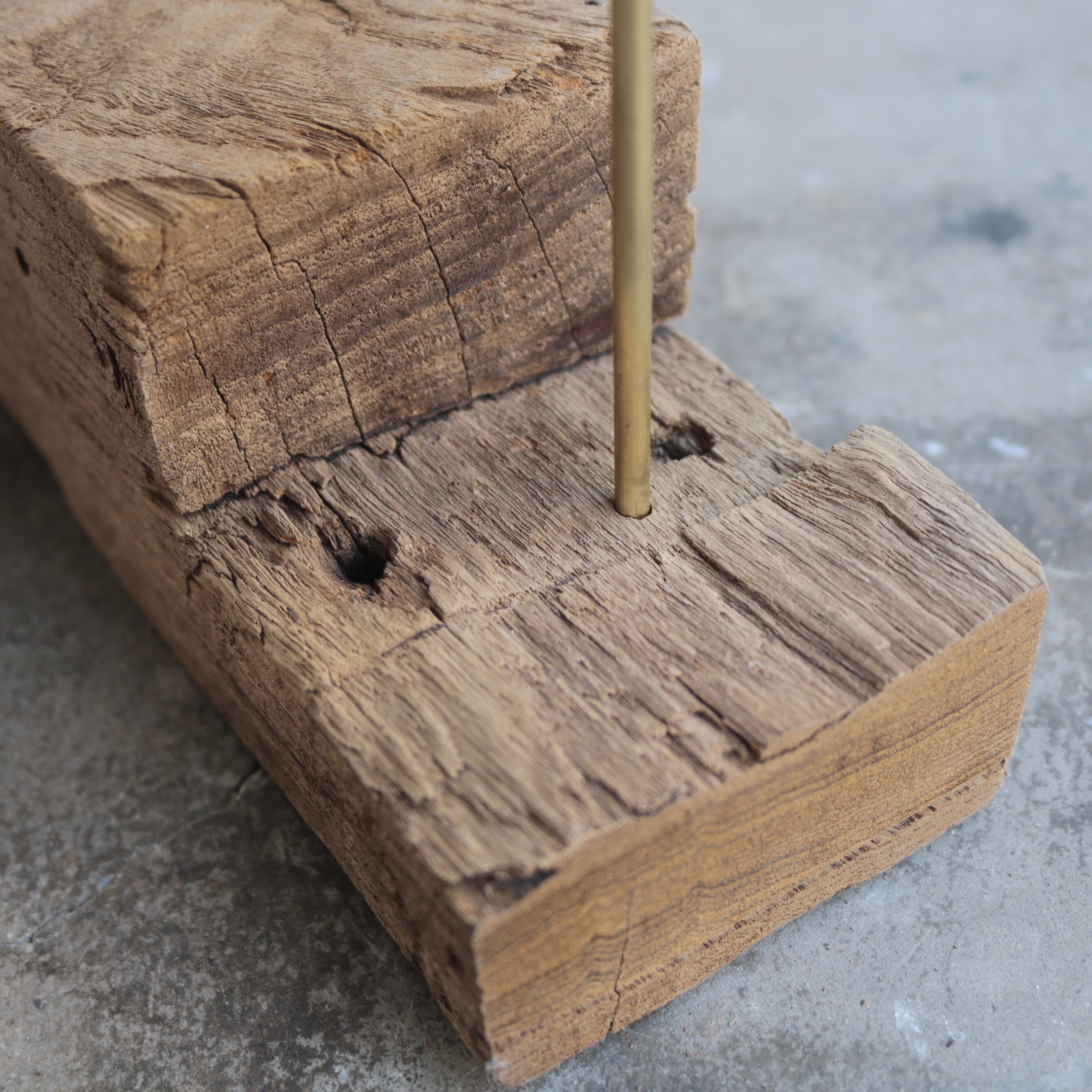 経年変化による傷や割れが歴史を感じさせる古材に、