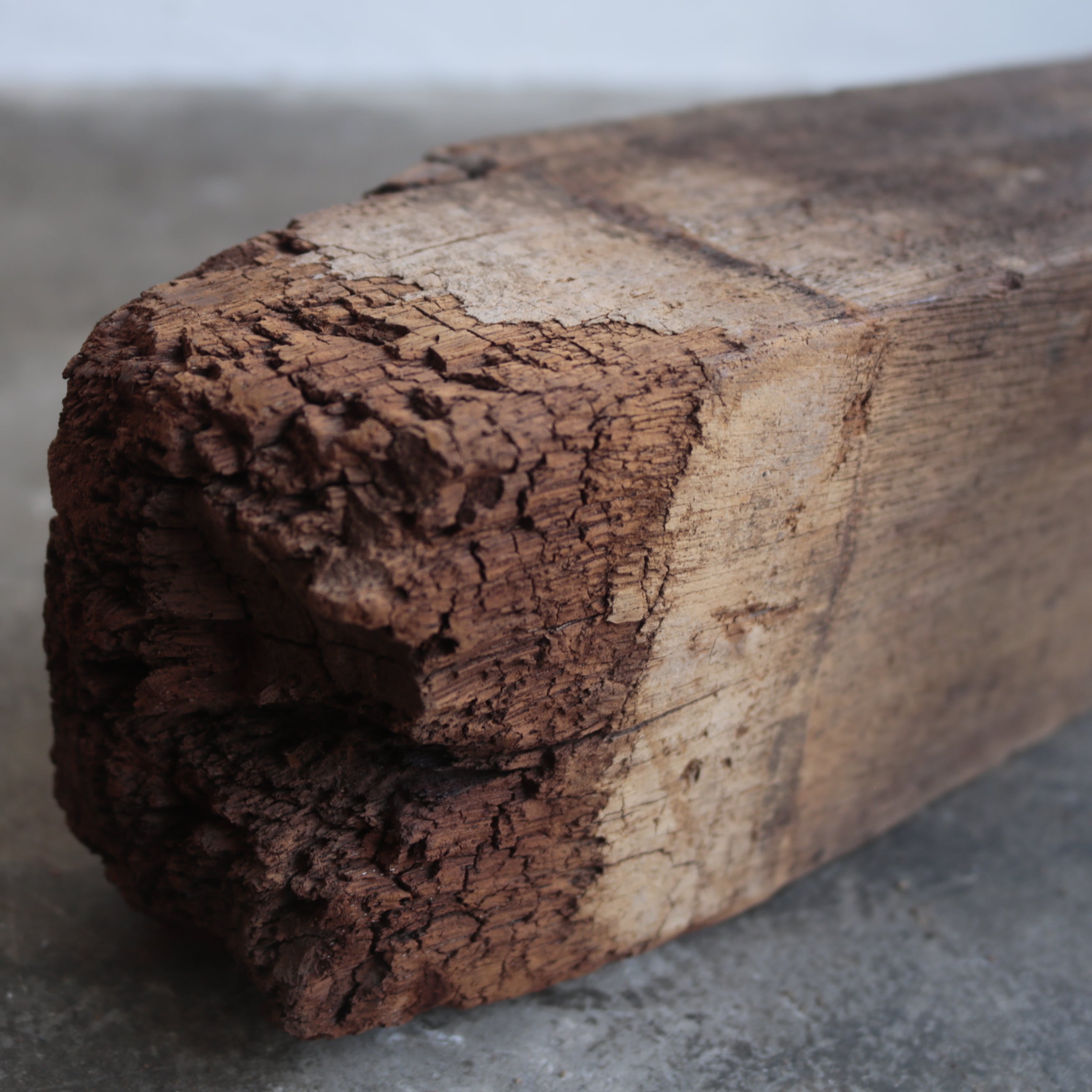 経年変化による傷や割れが歴史を感じさせる古材に、
