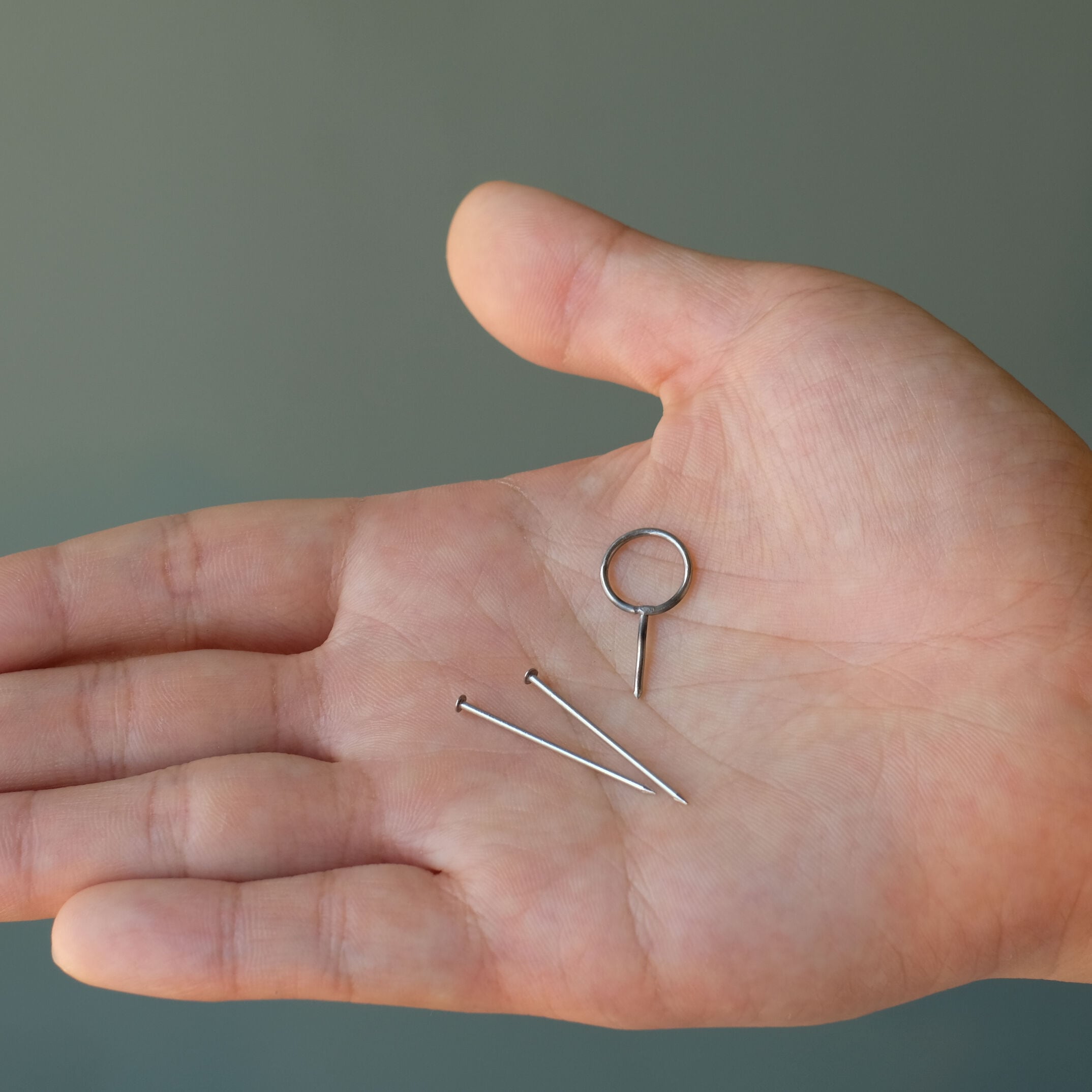 とっても軽く仕上げたので、付属の細いステンレスピンをご使用いただくことで壁にダメージを最小限に抑えることができます。